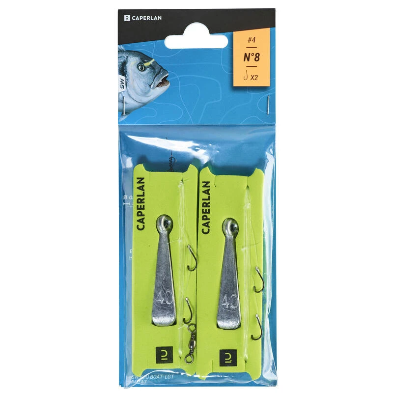 Nos pêcheurs concepteurs ont développé ce montage pour débuter la pêche a soutenir bateau en mer calmeCette ligne est composée d’un montage « facile a utiliser ».Il suffit de fixer l’émerillon sur le fil du moulinet. Parfaitement conseillé pour un utilisation dans une mer calme .