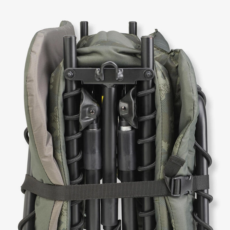 Concernant la compacité, le Wildtrack fait fort, très fort ! En effet, son encombrement offre des dimensions stupéfiantes tant elles sont contenues et maitrisées: seulement 75x58x36cm ! Une prouesse pour un bedchair offrant un tel niveau de confort et de résistance.