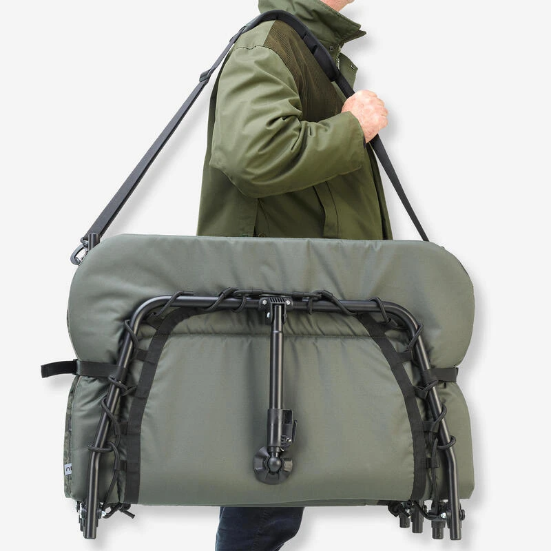 Amener son bedchair sur son spot de pêche n’est pas chose aisée. En effet, les dimensions imposantes da la majorité des bedchairs compliquent la tâche, notamment si nous ne sommes pas équipés d’un chariot ou d’un bateau.