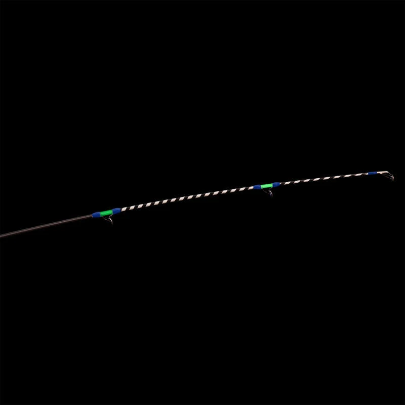 Nous avons développé le concept Reflective Tip sur les cannes SYMBIOS-900 420 POWER. Ce concept ajoute un maximum de visibilité sur la canne grâce au revêtement argenté, pour qu’il scintille lorsqu’on l’éclaire. Ce permet de le voir de nuit à tout moment en l’éclairant avec votre lampe frontale ou votre lampe à main. Avec le Reflective Tip, pour visualiser votre scion, éclairez le !