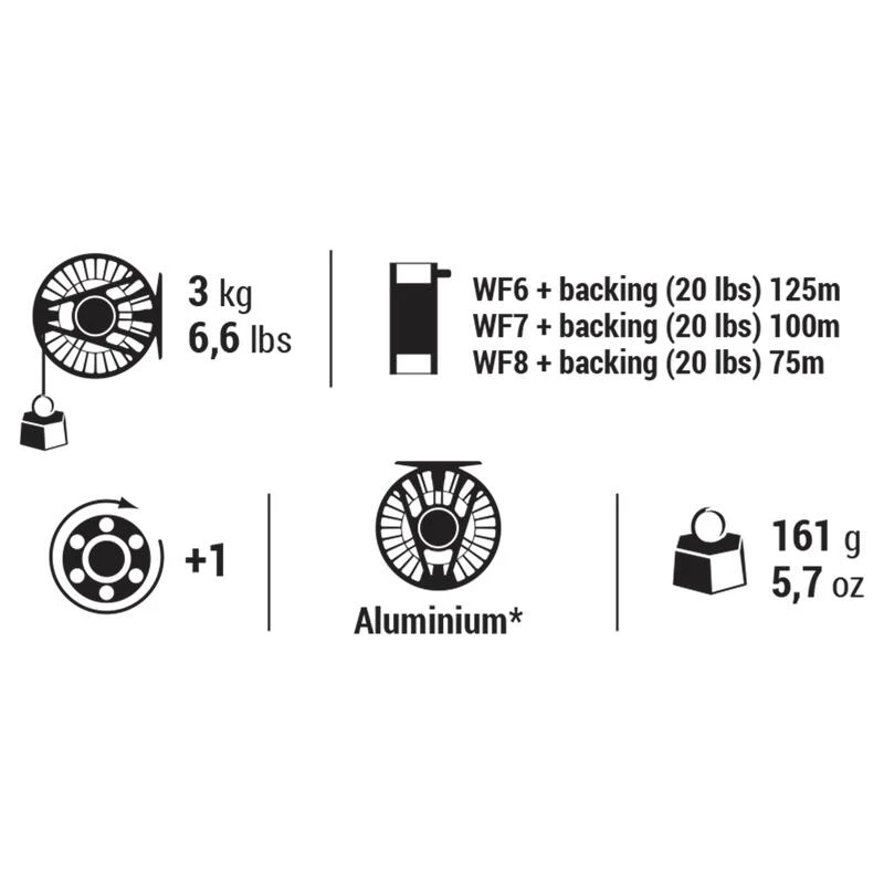 Nos concepteurs pêcheurs ont développé ce moulinet pour vous permettre de pêcher à la mouche avec une soie de #6, #7 ou #8Léger, grâce à son chassis et sa bobine en aluminium, ce moulinet vous garantira également un bon contrôle grâce à son frein carbone étanche