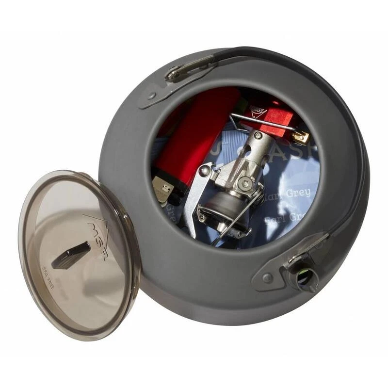 Théière en aluminium anodisé léger et robuste – son bec verseur précis en fait un outil idéal pour préparer café, thé et repas secs !