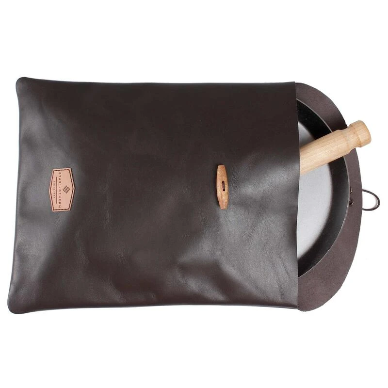 Le couvre-pot de rangement en cuir Stabilotherm avec cordon de serrage, idéal pour les poêles de chasse jusqu’à 18-22 cm de diamètre !